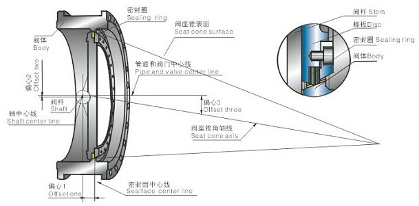 氣動三偏心蝶閥由氣動傳動機構和三偏心蝶閥組成,根據連接方式不同一般可分為法蘭或對夾式,材質分為碳鋼、不銹鋼等,閥體部分采用三偏心結構,閥板與密封機構設計獨特,具有優良的切斷性能和耐久性能,同時兼備切斷、調節雙重功能,屬長壽命、節能型蝶閥。由于氣動三偏心蝶閥的關閉和閘閥關閉一樣,是靠扭矩來完成的,即閥門關閉的扭矩越大,閥座的密封性就越好,故有人稱三偏心蝶閥為90°旋轉閘閥。